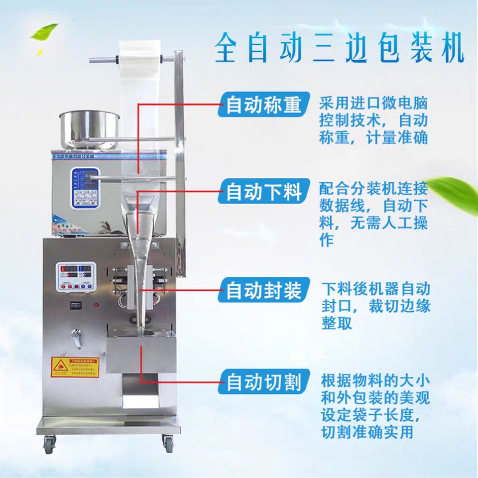 1.包裝機雙變頻器控制,袋長即設即切,無需調(diào)節(jié)空走,一步到位,省時省膜。